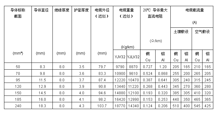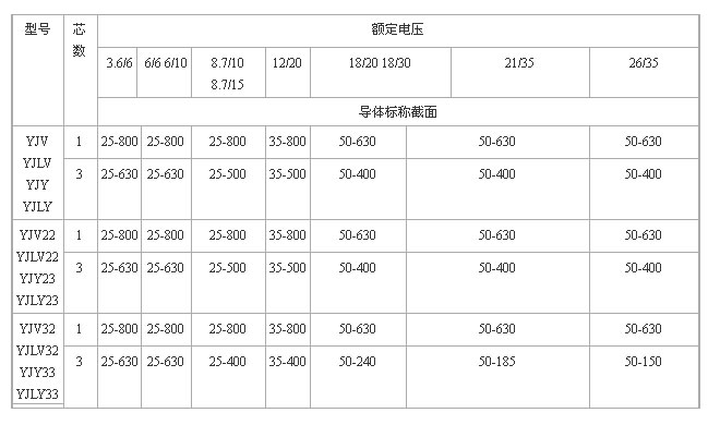 6/6kV, 6/10kV 單芯交聯(lián)聚乙烯絕緣細鋼絲鎧裝聚氯乙烯護套電力電纜(YJV32,YJLV32)