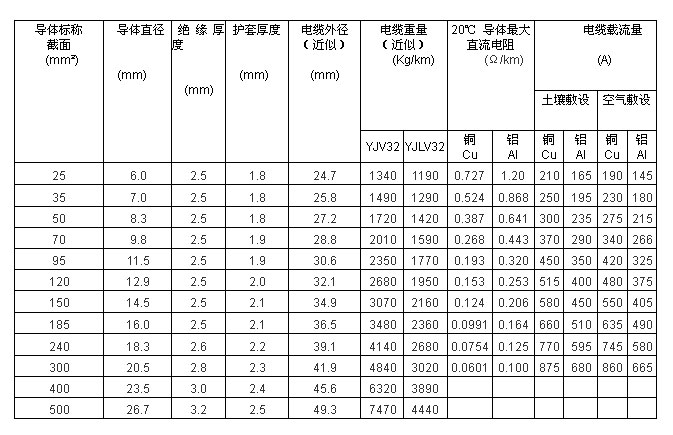 26/35kV 三芯交聯(lián)聚乙烯絕緣細鋼絲鎧裝聚氯乙烯護套電力電纜(YJV32,YJLV32)