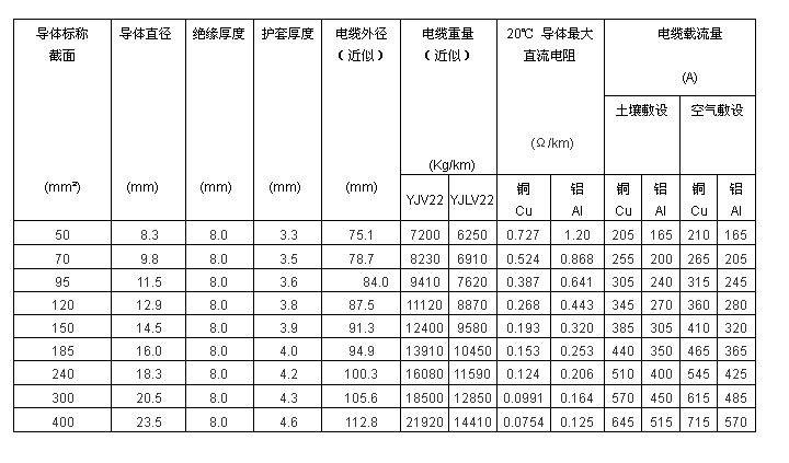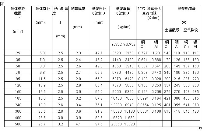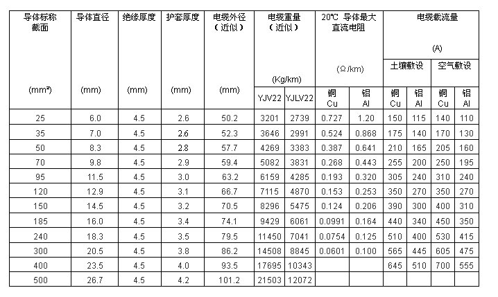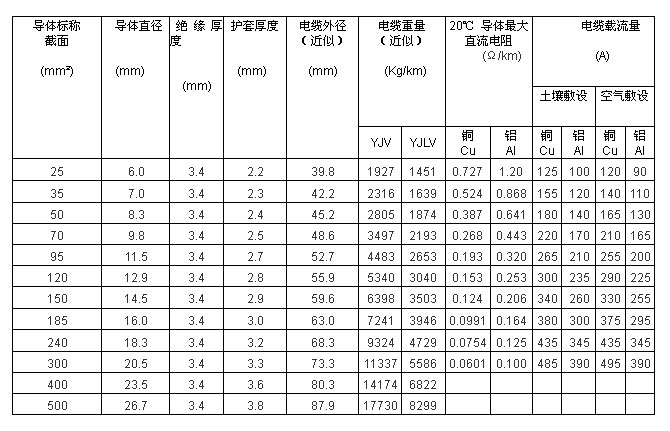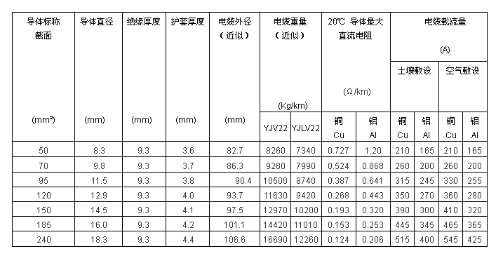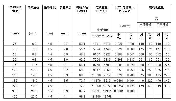 電纜導體的最高允許工作溫度:90℃。