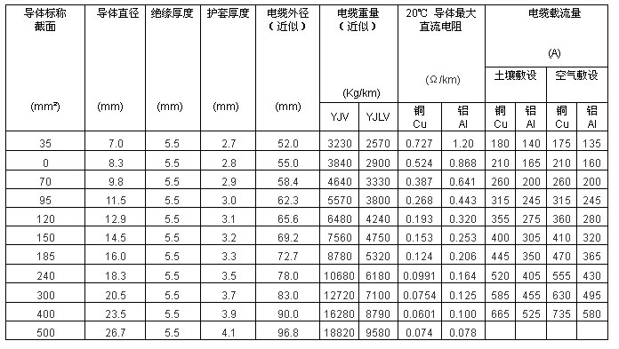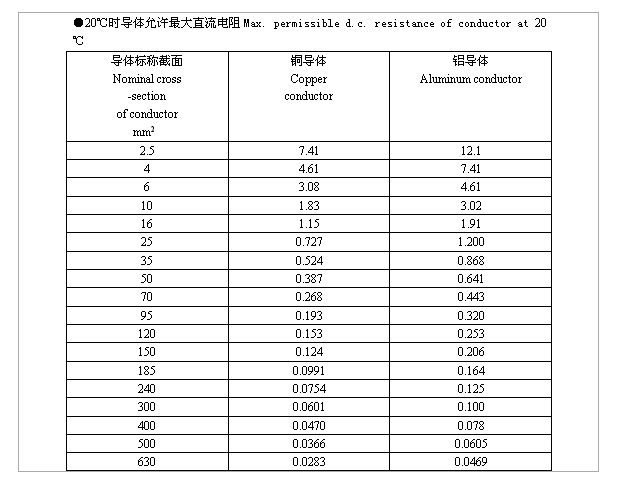 電纜導體的長期最高工作溫度: 90℃。