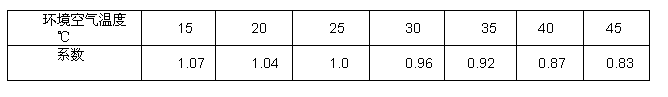 不同環(huán)境溫度下的載流量修正系數(shù)
