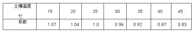 不同土壤溫度下的載流量修正系數(shù)