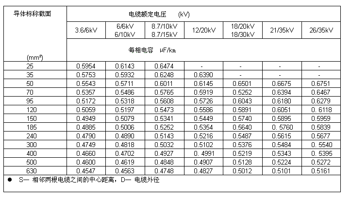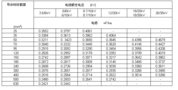 電纜的電容、電感(參考值)電容