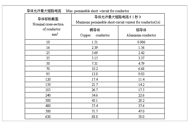 短路時(最長時間不超過5s)電纜導體的最高溫度不超過250℃。